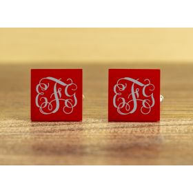 3 Harf Monogram Yazılı Gümüş Kaplama ve Pleksi Kare Kol Düğmesi