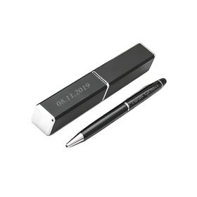 Kişiye Özel Yüksek Kaliteli Siyah Kapak, Gümüş Gövdeli Roller Kalem