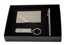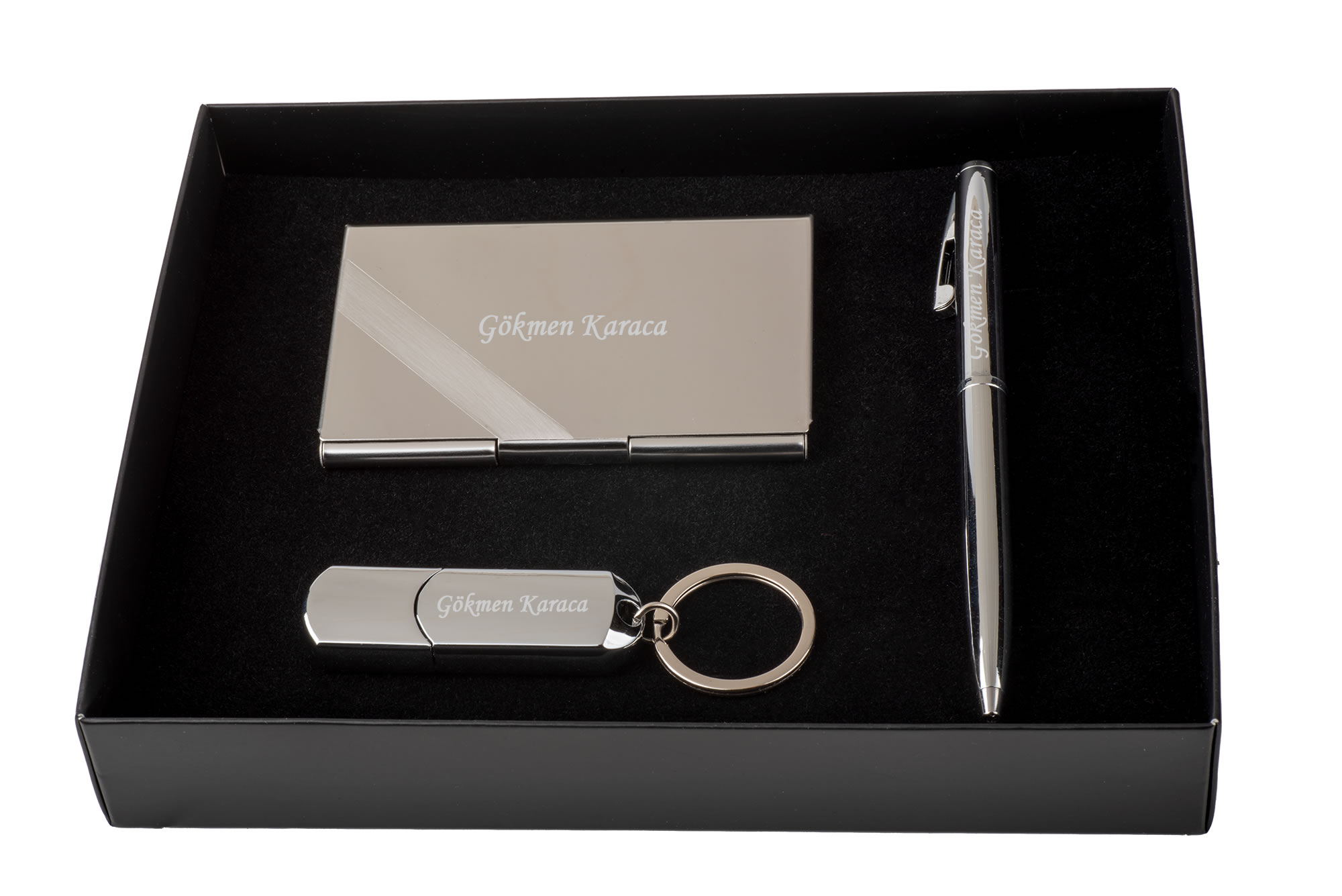 1 adet kalem, 1 adet kartvizitlikı ve 1 adet 32 Gb Usb flash diskten oluşur.