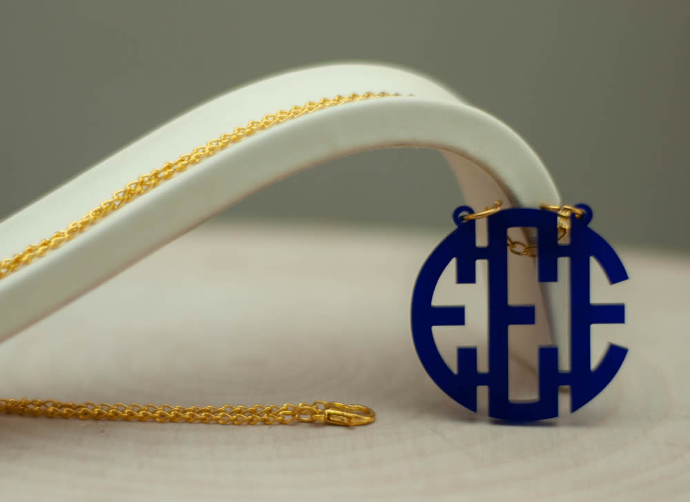 3 Harfli Circle Monogram Yazılı Pleksi Kolye